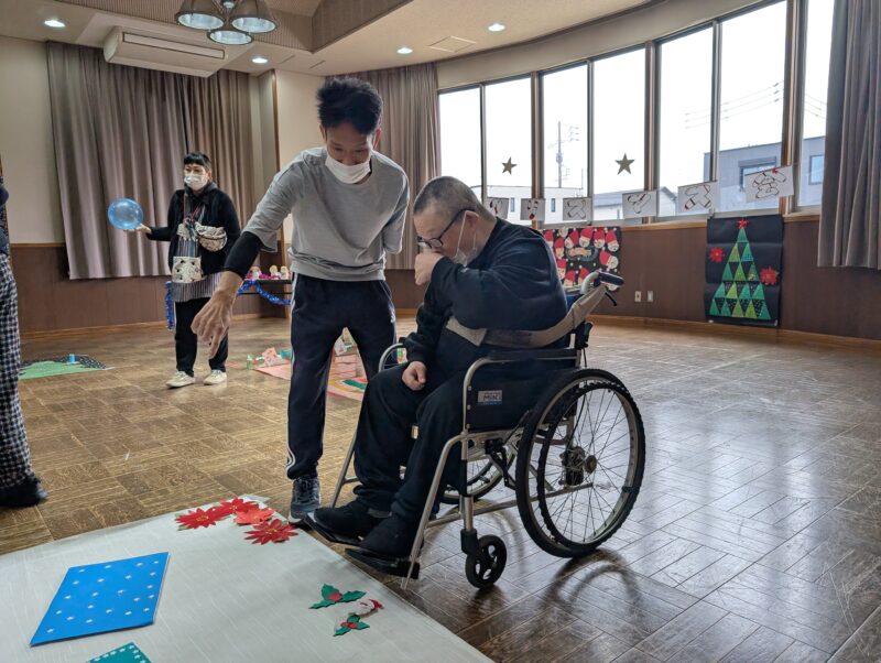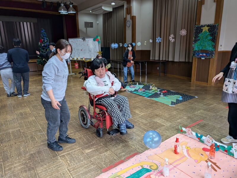 今年のクリスマス会は、集会室で輪投げ・ボーリング・神経衰弱ゲームなど、さまざまなレクリエーションを楽しみながら、笑顔あふれる時間となりました。