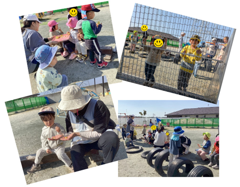 理事長、バスの運転手、ボランティアさんが、焼き芋を焼くお手伝いをしてくださいました。お芋の焼き方に、子どもさんたちも興味津々でした!お疲れ様でした&有難うございました☆