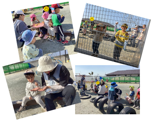 11月7日(金)に毎年恒例の「焼き芋大会」が園庭で行われました。天気も良く、外でホクホクの焼き芋をみんなでほおばりました。焼きたてのさつまいもはおいしかったね♪