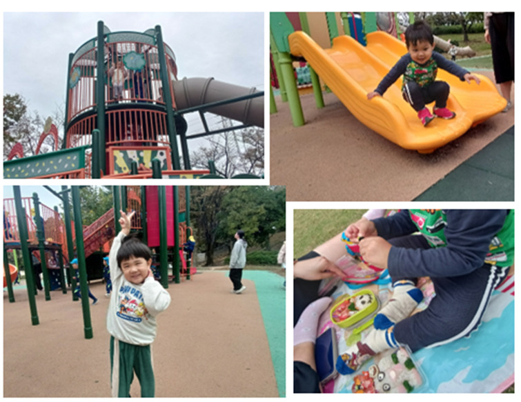 カトレア遠足🌳 2025/11/12 10月に遠足に行きました☆親子でバスに乗って大池公園に行ってきました。5クラスとも天気に恵まれて公園でたくさん体を動かしました。 お弁当を食べ、ふらっとでお買い物をする親子もいました😊