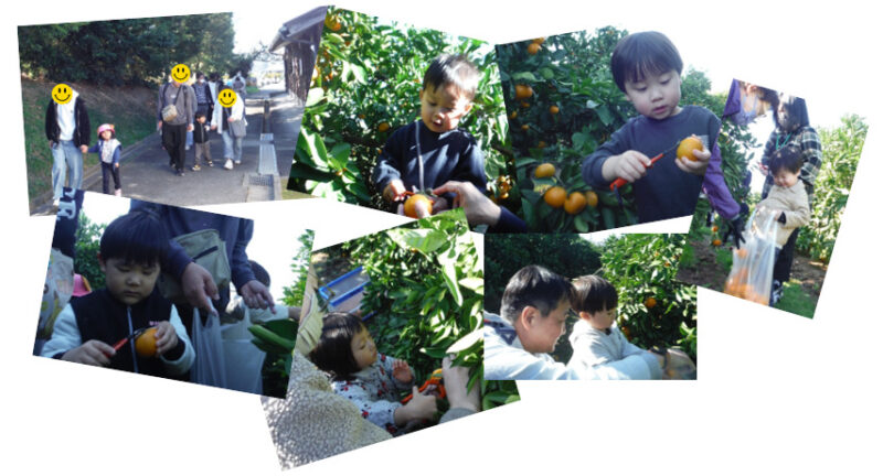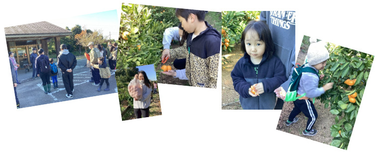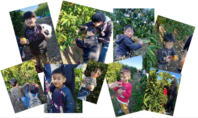 「みかんってこうやってなるんだ。」「はさみでみかんを上手に切れたよ。」お天気にも恵まれ、美味しいみかんを食べながらのみかん狩り体験。保護者さんとともに楽しい1日となりました🍊