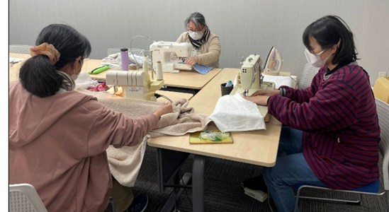 カトレア手芸部A先生の「ミシン持ってきてー」の呼びかけで、今日(1/28)は会議室で怒涛の雑巾縫い。「外国の工場みたいだね!」なんて笑いながら、3台のミシンでものすごい勢いで雑巾を縫っています。
