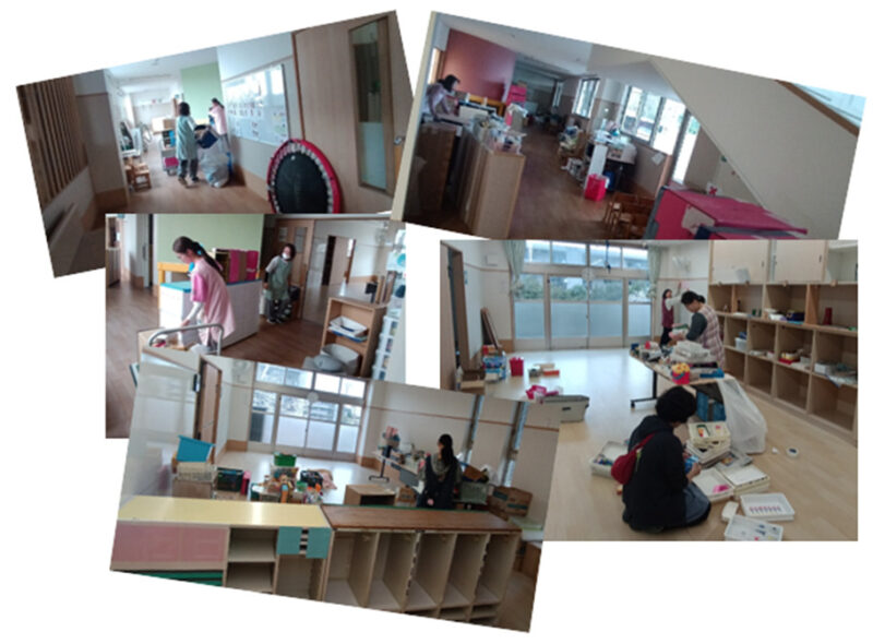 が、園がお休みしていた間、何をしていたかと言うと…新しい年度を迎えるために旧クラスの大掃除、そして、新クラスの準備で大忙しでした。